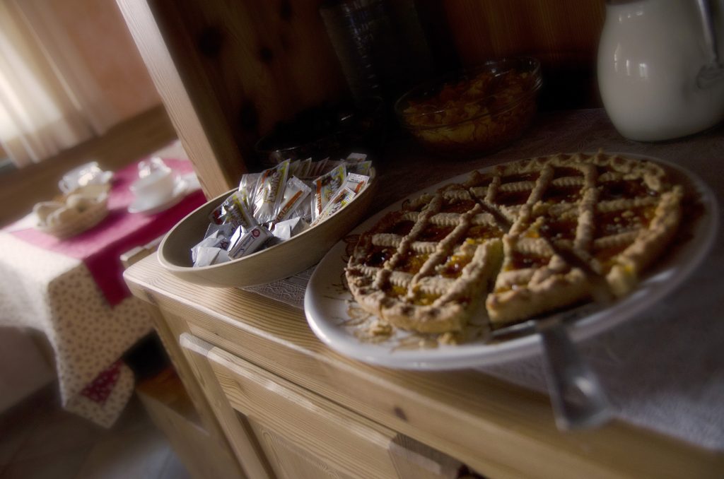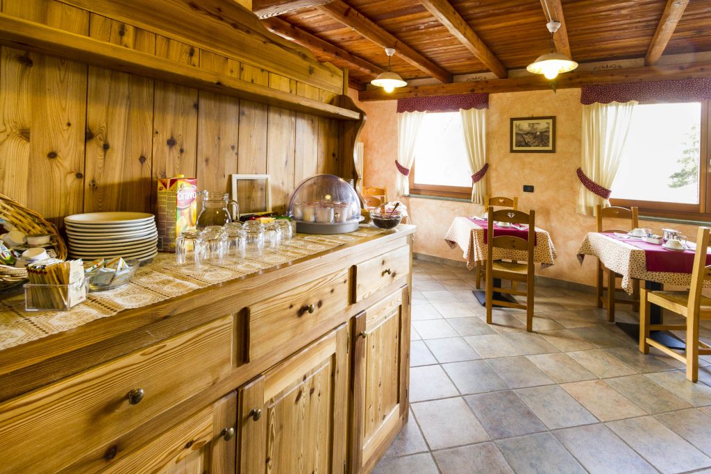 La colazione viene servita in una saletta con vista panoramica.