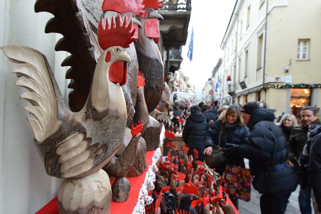 È l’aria pungente intrisa di parole in dialetto e canti solenni, l’aroma intenso del vin brûlé, il chiacchiericcio allegro di una folla che attraversa festante la città. E poi ci sono loro, gli artigiani: sorrisi caldi e benevoli, occhi cerchiati dalle rughe, mani callose che impugnano attrezzi pesanti di secoli di storia.