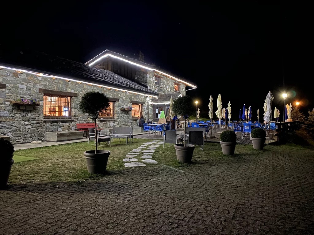 Situato nella conca di Chantorné, il locale si presenta in pietra, legno e lose nel rispetto dell’architettura valdostana.